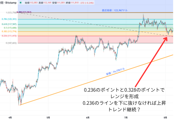 しかし、長期的に見てBTCは強い上昇トレンドを形成しています。