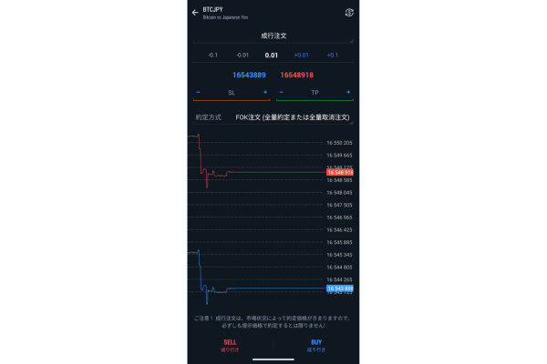 注文画面が表示されますので、注文内容やロット数を設定して発注します。