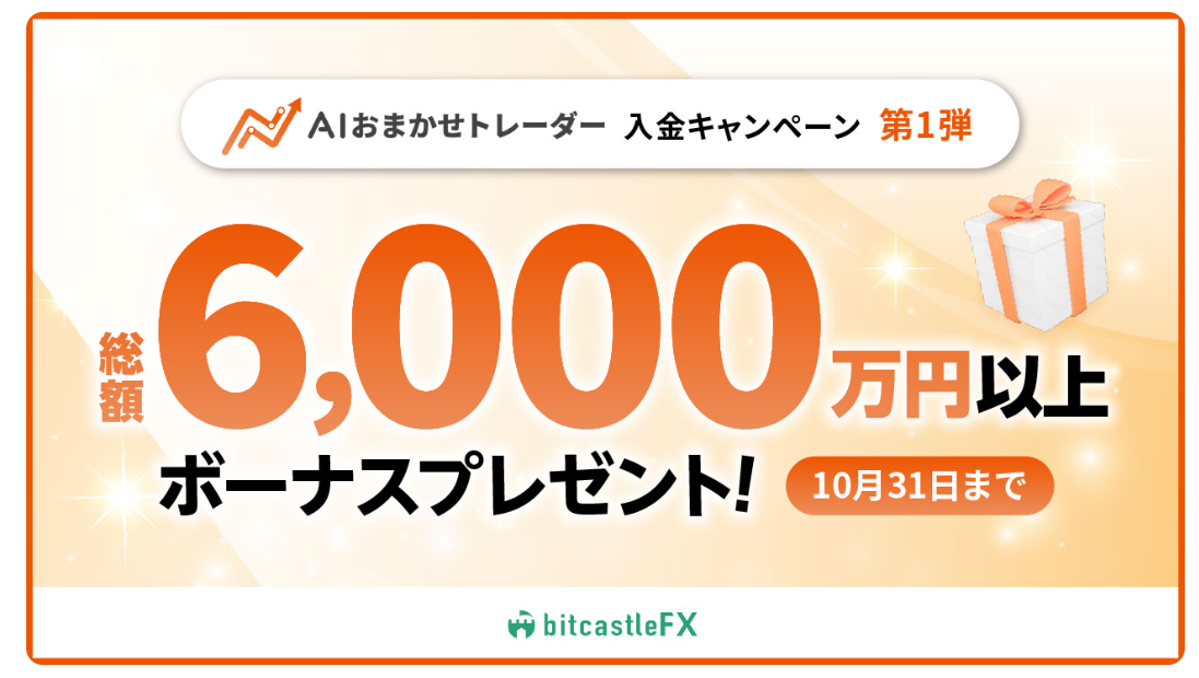 さらに、期間中にbitcastleFX(ビットキャッスル)でAIおまかせトレーダーを利用すると当選確率が10倍にアップします!