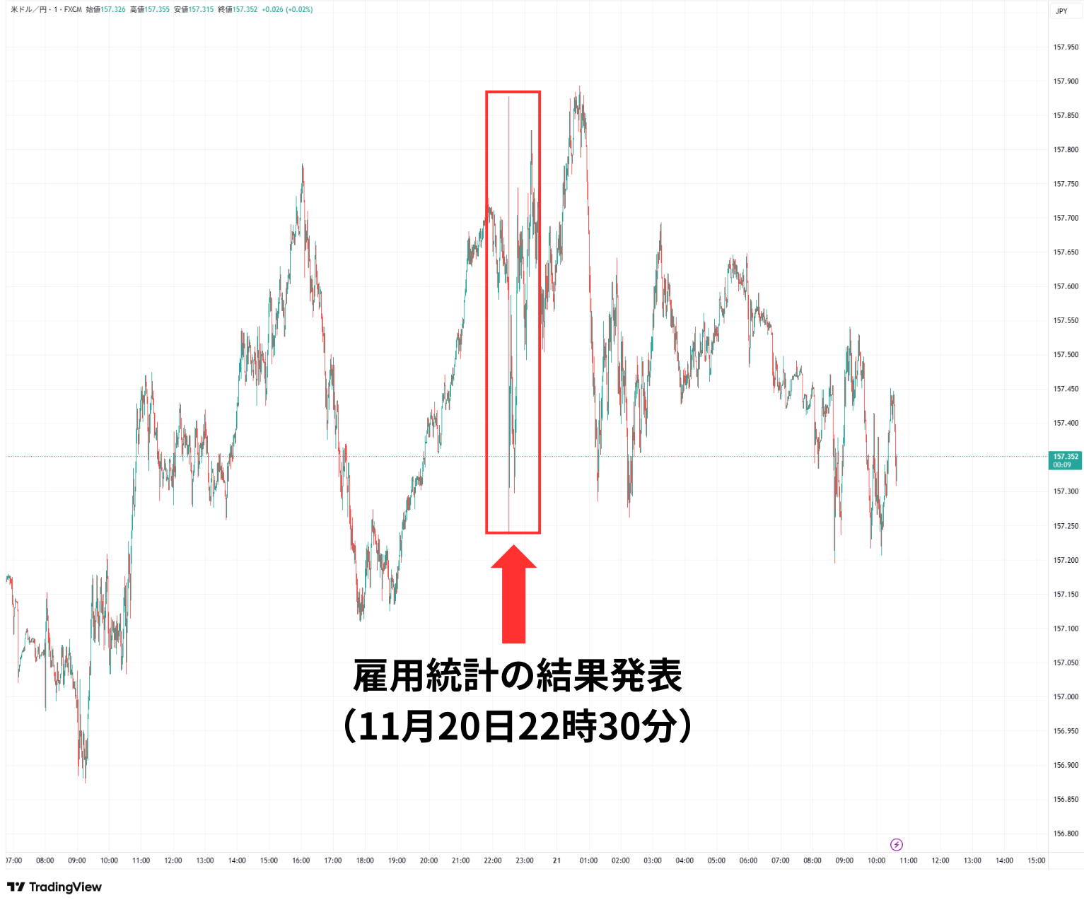 雇用統計の為替市場の反応