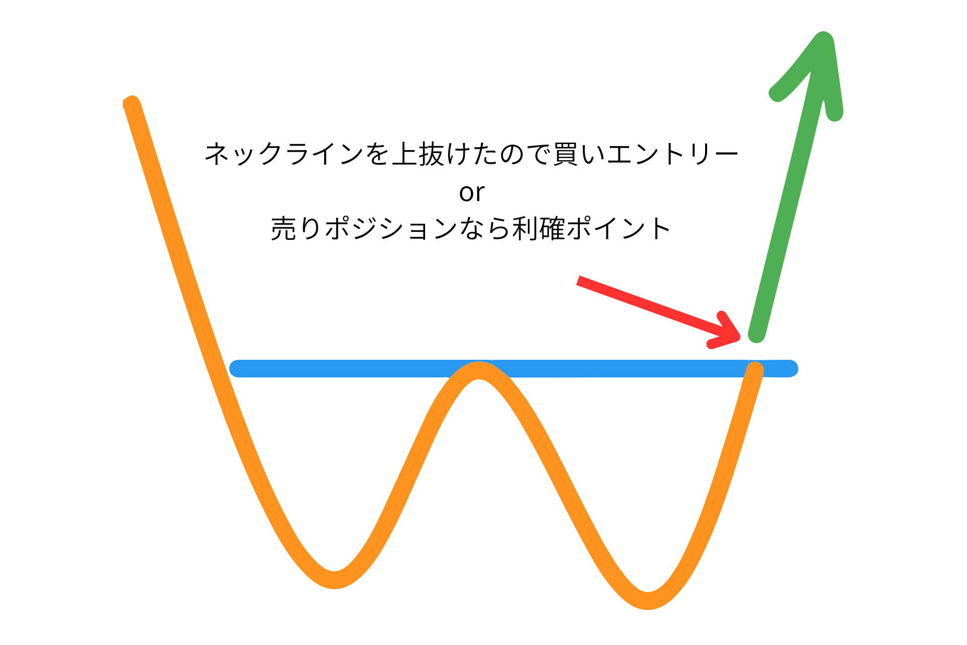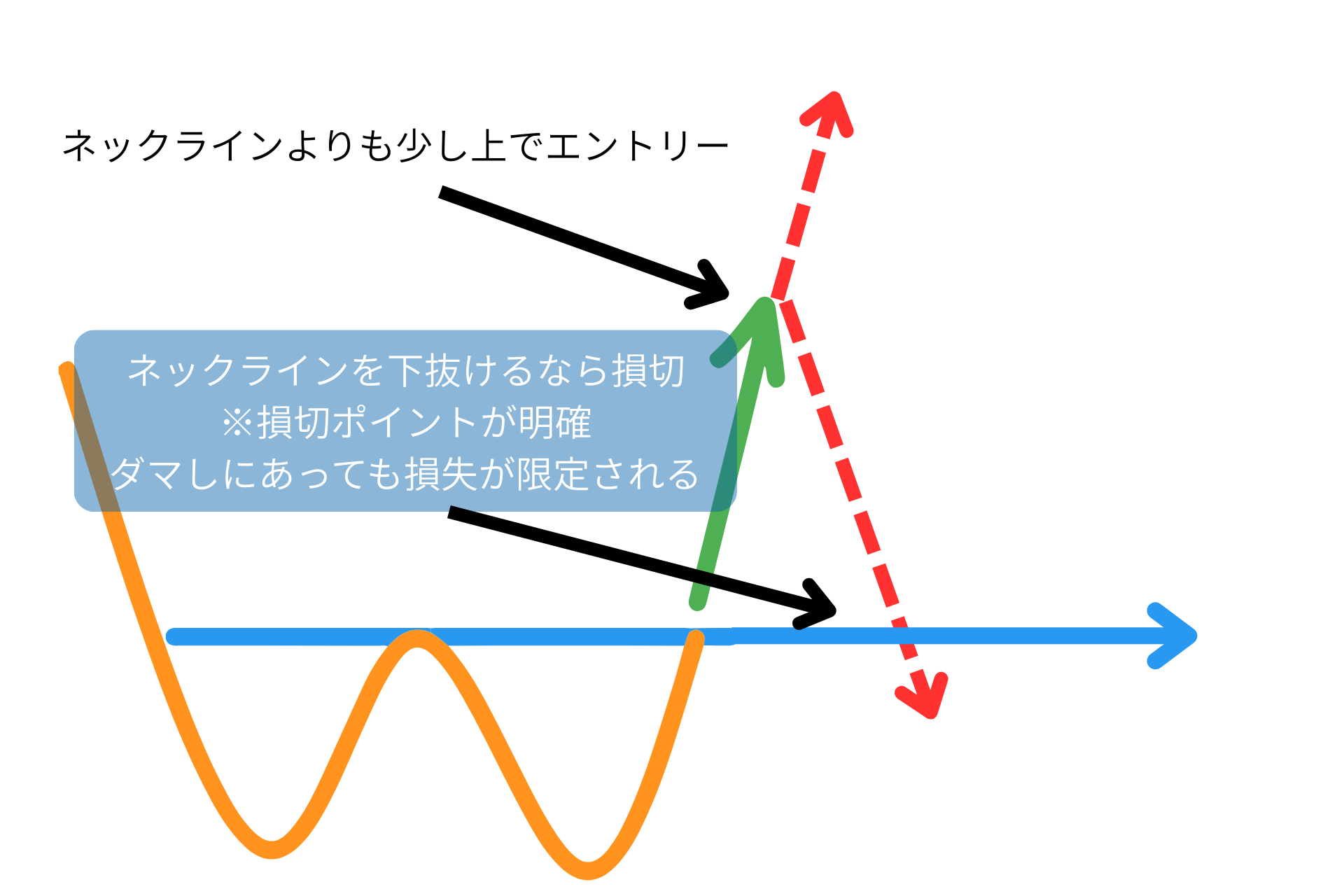 エントリーポイントとして判断するときは、ネックラインよりも少し上でエントリーがおすすめです。